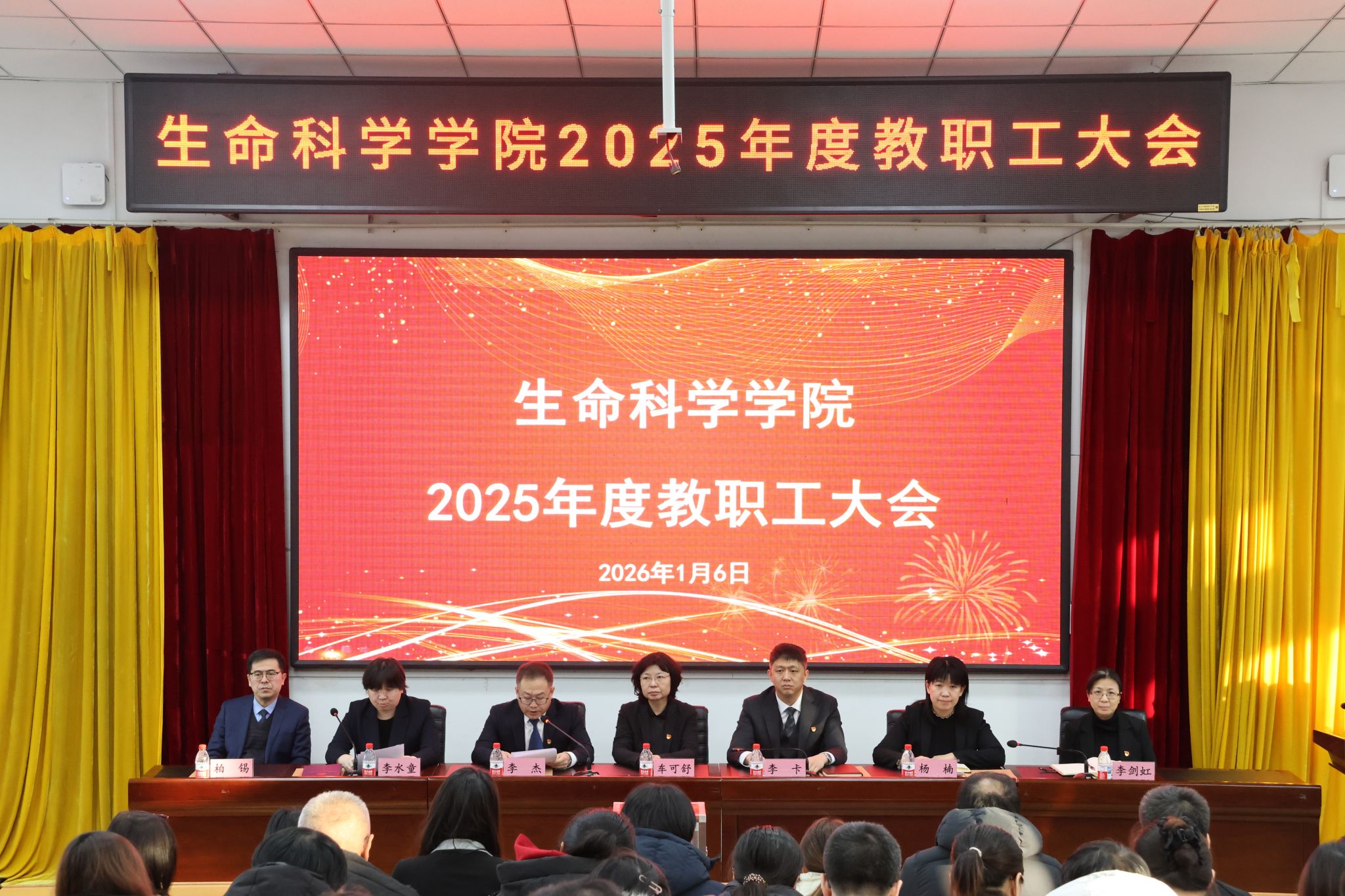 1月6日下午,生命科学学院在实验七报告厅召开2025年度教职工大会。校工会副主席车可舒出席大会,生命科学学院领导班子成员、全体教职工参加会议。会议由学院党委副书记李水童主持。