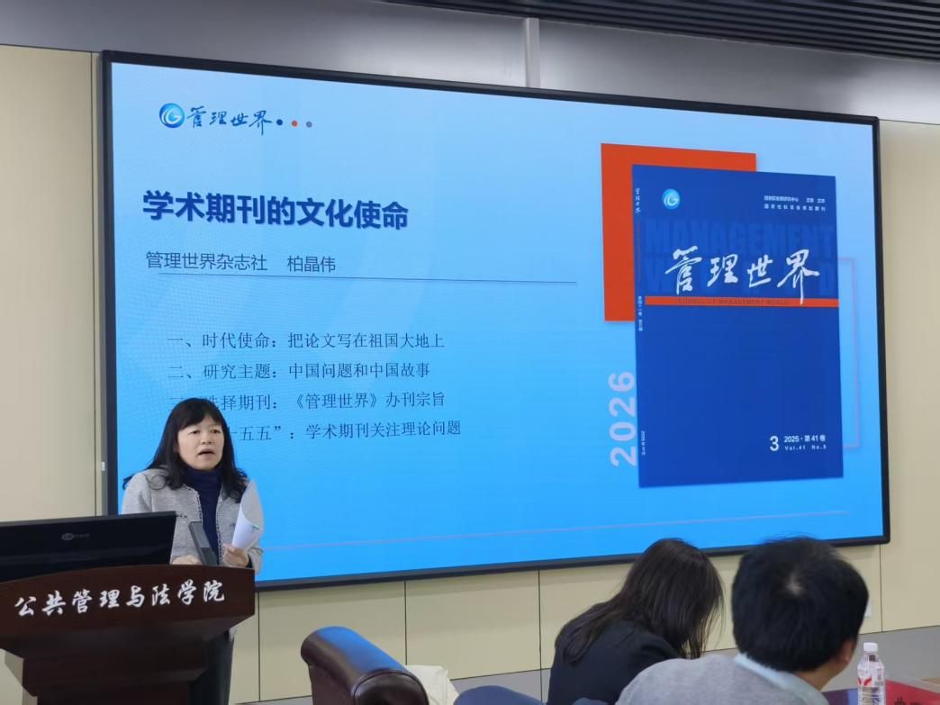 为精准对接师生学术论文写作与发表需求,搭建高水平学术交流平台,1月7日下午,公共管理与法学院在成栋楼1106会议室举办第三十五期社稷讲坛之期刊工作坊。活动邀请了《经济评论》主编叶初升、《管理世界》副总编辑柏晶伟、《学习与探索》主编房宏琳、《南京农业大学学报(社会科学版)》常务副主编宋雪飞、《西北农林科技大学学报(社会科学版)》常务副主编王倩、《西北农林科技大学学报(社会科学版)》编辑部主任张洁、《华中农业大学学报(社会科学版)》执行主编范敬群、《华南农业大学学报(社会科学版)》常务副主编段伟、《中国农业大学学报(社会科学版)》副主编肖时花、《农业经济与管理》常务副主编曲丽丽等期刊领域专家进行交流。学院50余名骨干教师和研究生代表参加会议。会议由学院院长程镝主持。