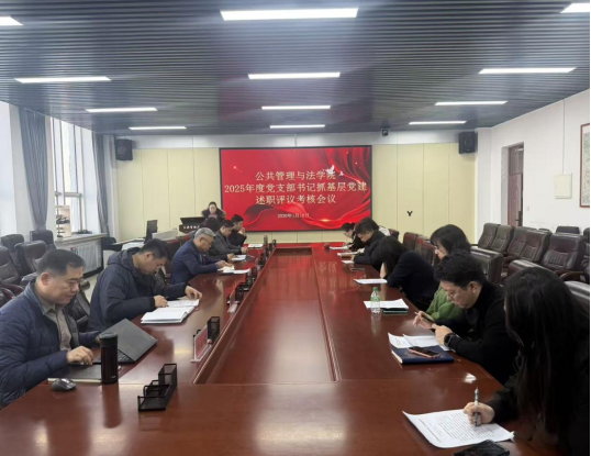 为夯实基层党建工作,根据学校党委统一部署,公共管理与法学院召开2025年度党支部书记抓基层党建述职评议考核会议。学校组织部副部长王磊,机关党建办公室主任王炳儒进行现场督导,学院领导班子成员、各支部书记参加会议。会议由学院党委副书记赵文和主持。