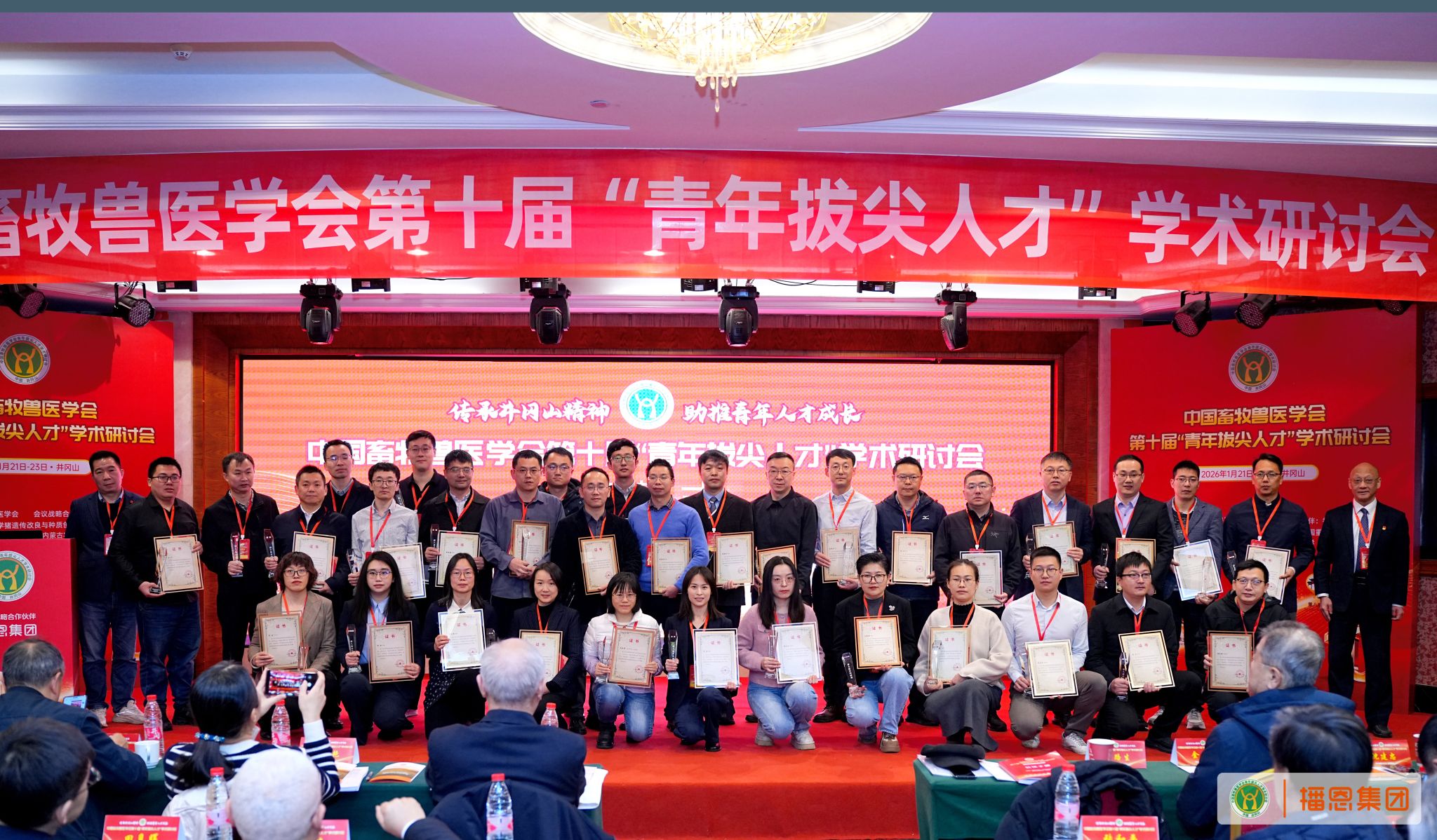 2026年1月21日至23日,由中国畜牧兽医学会主办,江西农业大学省部共建猪遗传改良与养殖技术国家重点实验室、播恩集团和内蒙古农业大学联合承办的中国畜牧兽医学会第十届“青年拔尖人才”学术研讨会及“井冈新秀”颁奖仪式在井冈山举行。