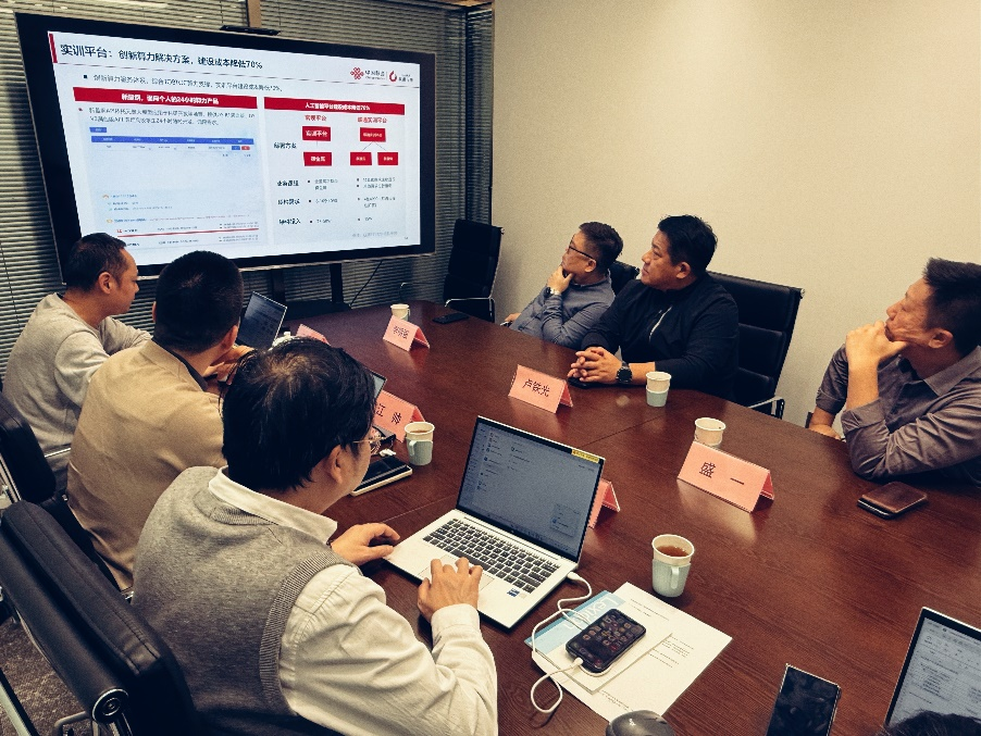 在联通数据智能有限公司,学院一行受到了学院校友、中国联通数字政府产品部交付总监张延及其团队的热情接待。双方围绕人工智能与大数据领域的发展趋势、技术应用及产学研协同创新等方面进行了深入交流。