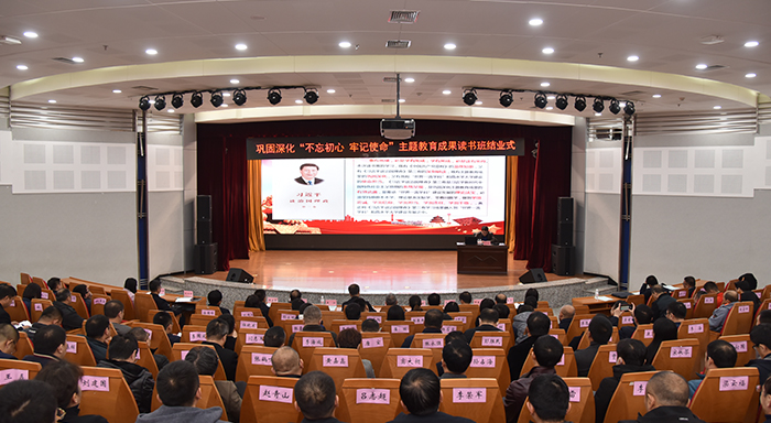 10月27日,我校党委理论学习中心组集体学习暨巩固深化“不忘初心、牢记使命”主题教育成果读书班结业式在图书馆一楼报告厅举行,校党委书记孙登林出席结业式并讲话,学校党委理论中心组成员,全校正、副处级干部等参加结业式。结业式由庞玉红主持。