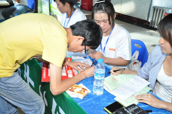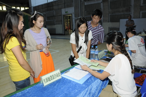工作人员为新生讲解国家助学贷款政策