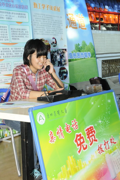 新同学通过免费电话向家里报平安