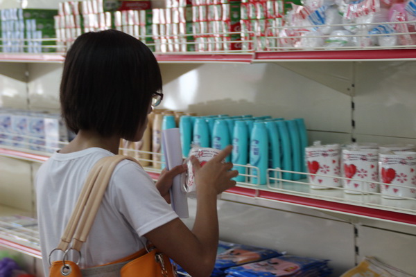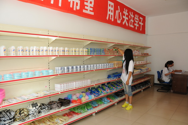 新生在阳光超市挑选学习及生活日用品