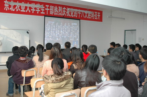 11月8日上午9时,举世瞩目的中国共产党第十八次全国代表大会在北京人民大会堂隆重举行,全校各分党委、总支以各种形式组织党员干部和师生员工收看了大会开幕直播盛况,聆听了胡锦涛总书记作的工作报告。在校校领导与党政机关干部在主楼604会议室共同观看了开幕盛况。