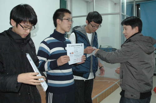 17:30,大赛颁奖仪式在农业工程研究中心530举行,我校及黑龙江科技大学相关专业教师为获奖同学颁奖。最终,吴亚东获得专业组金奖,郭生智获得非专业组金奖,此外还评选出专业组一等奖一名、二等奖二名、三等奖三名,非专业组一等奖三名,二等奖十名,三等奖十六名。