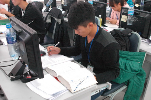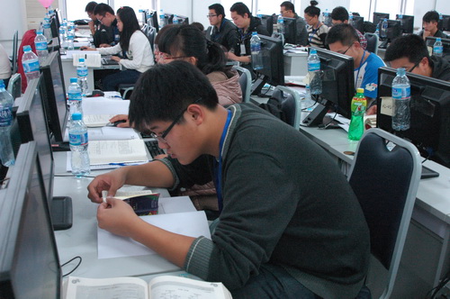 此次计算机程序设计大赛吸引了来自本校和黑龙江科技学院的百余名参赛者,比赛根据ACM国际大学生程序设计竞赛规程和赛制进行专业及非专业组比赛。12:00,大赛在成栋楼343正式开始。整场比赛持续3个小时,选手们凭借着扎实深厚的编程功底,以充实饱满的热情、缜密严谨的思考和坚持不懈的努力攻克了一个又一个挑战。