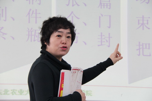 12月13日8:50,国际文化教育学院王敏在研究生楼406教室进行教职工综合素质大赛第十四场示范教学,主讲内容:语法“了”的用法。