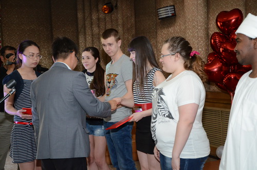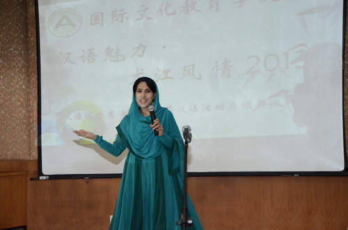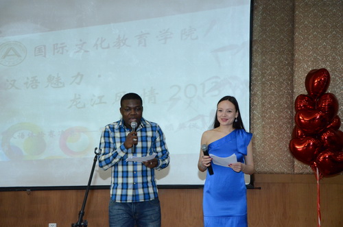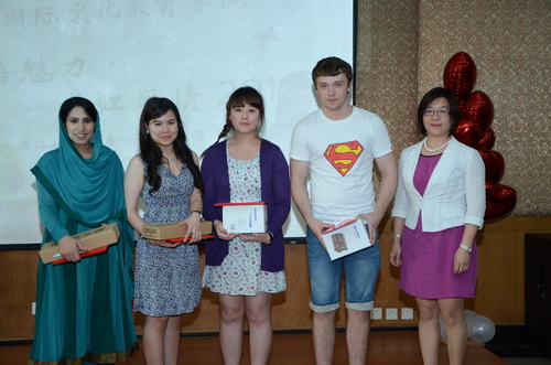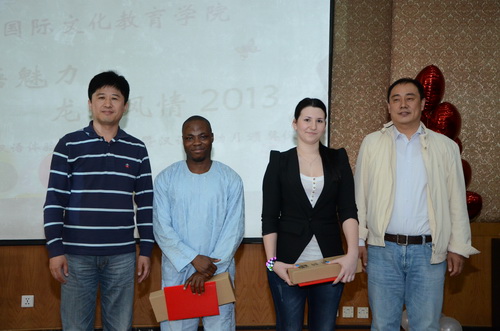 5月23日14:30,国际文化教育学院“汉语魅力· 龙江风情”2013汉语活动月汉语体验赛决赛——暨汉语活动月颁奖仪式在国际文化教育学院多功能厅223举行。学院党委书记王洪亮、院长赵宝辉、副院长张晶出席比赛。比赛由加纳留学生纳森、俄罗斯留学生达尼娅主持。