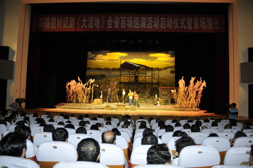 6月5日是世界环境日,环保题材话剧《大湿地》全省百场巡演活动启动仪式暨首场演出在我校音乐厅举行。该活动是省环保厅围绕生态文明建设开展的“龙江生态文明一年一主题系列宣传活动”内容之一。《大湿地》是大庆的原创剧目,是以大庆湿地为背景,通过百姓与非法盗猎者之间的斗争,展现湿地的壮美以及正直善良的质朴民风,呼吁生态和谐。大庆市宣传部部长郑欣英、黑龙江省政协副主席赵雨森在启动仪式上讲话。黑龙江省环保厅厅长李平,黑龙江省委高校工委书记、教育厅党组书记、厅长、我校党委书记、校长徐梅出席活动。