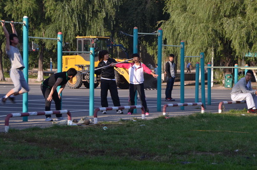 王舒恒正在组织队员训练,“队友们都很刻苦,虽然一些出色的队员已经毕业,但我们始终有新队员加入训练,希望他们都能在运动会上取得好成绩。”