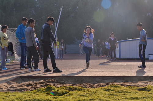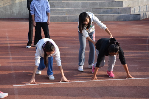 “左腿摆动,右腿蹬伸,推动身体向投掷方向移动……”戴亚荣是学校女子铅球记录保持者,她正在指导掷铅球的滑步动作要领。她说:“我要在这次运动会上打破自己的记录,这是我奋斗的目标,也是对教练老师的回报。”