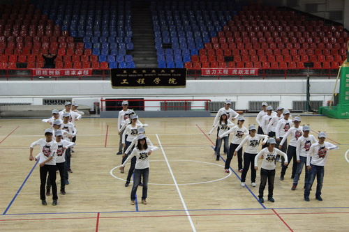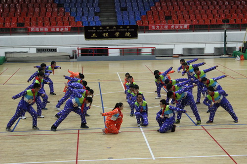 11月8日下午,由工程学院举办的“魅力活力操集体舞大赛”正在体育馆内火热上演。动感的节奏,律动的舞姿,热情洋溢的笑脸,舞台上选手们尽情舞动,现场掌声连连。15个班级汇编成15支队伍,每一组都以独特的舞蹈为现场观众呈现一场独特的视觉盛宴。《甩葱歌》、《江南Style 》、《gentleman》、《最炫民族风》这些大家耳熟能详的歌曲,都一一被同学们根据不同的元素组合编排成不同的舞蹈,虽然舞蹈的编排、同学们的动作都不是十分专业,但他们整齐的队形、优美的动作、认真的表情都展示出了健康、阳光、向上的精神风貌。