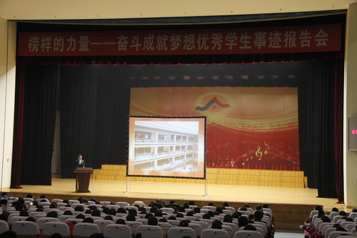 12月10日晚,由学工处举办的“榜样的力量——奋斗成就梦想优秀学生事迹报告会”在音乐厅召开。报告会现场座无虚席,学生工作处处长徐国峰,校团委书记于兴业,学生工作处副处长肖冬梅、杨石穿,各学院副书记、辅导员及学生代表参加了报告会。