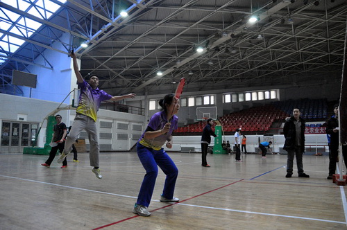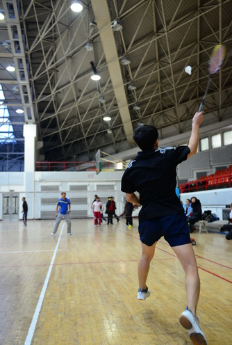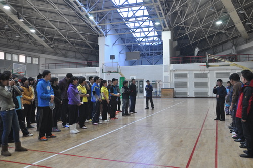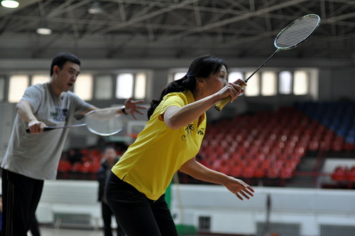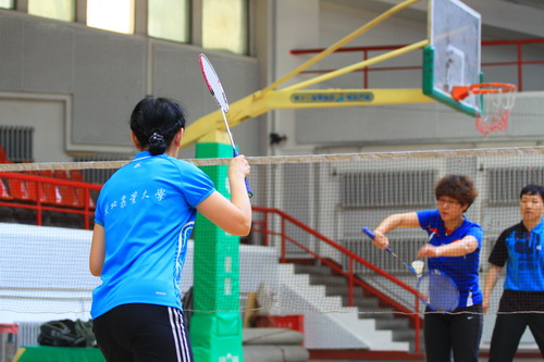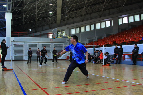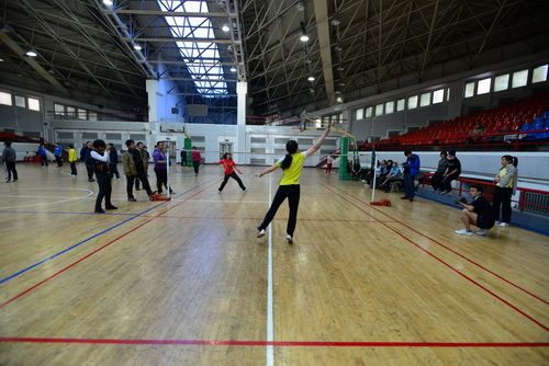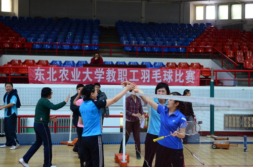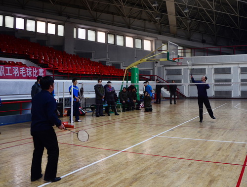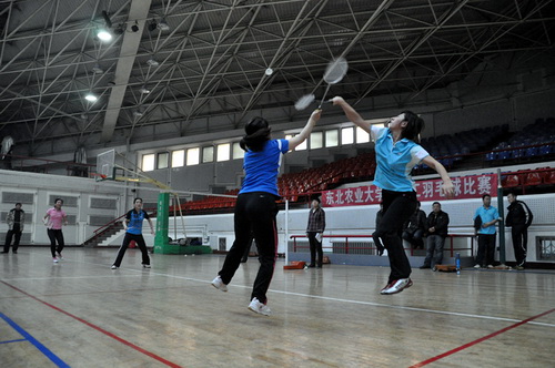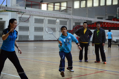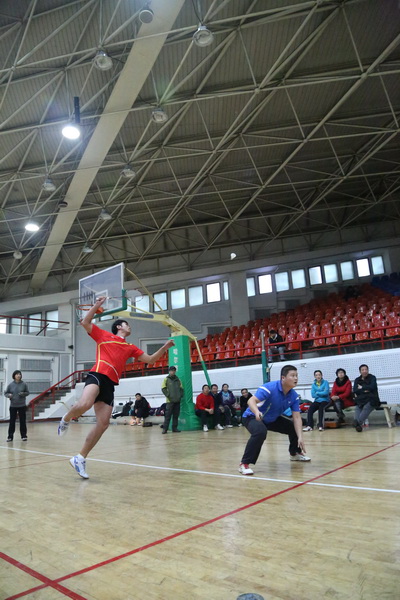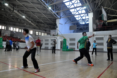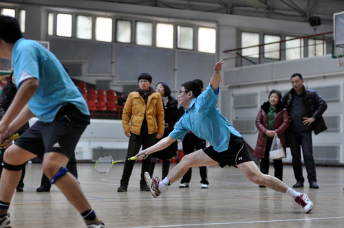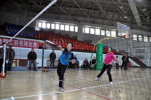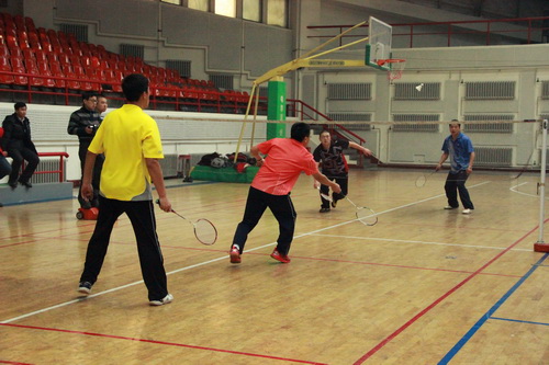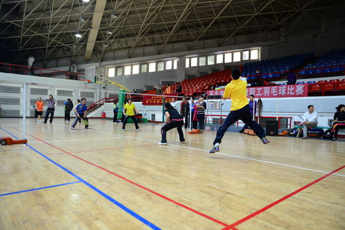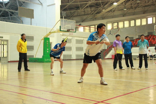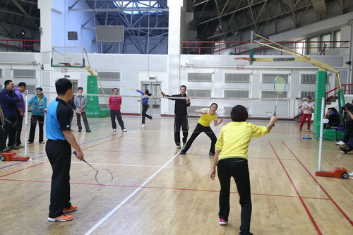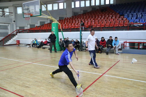 12月14日,由校工会、体育部和教职工羽毛球协会共同主办的我校2013年教职工羽毛球比赛开幕式在体育馆举行,副校长胡宝忠、羽毛球协会相关负责人出席开幕式。胡宝忠在开幕式上致辞,他强调锻炼好身体才能更好地投入到工作和生活中去,他号召全体参赛队员赛出水平、赛出风格,将学校的羽毛球事业推向新的高度。胡宝忠与羽毛球协会会长索志林为本次球赛开球,羽毛球比赛正式开始。
