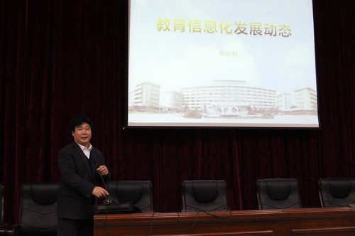“有一天,学生坐在清华校园里上的课将是哈佛、牛津、甚至剑桥的课程。”张长利以现今免费、自由、开放、拥有诸多优秀资源的MOOC网络学习平台为例,告诉大家集中资源更加优化、速度更快、效率更高、成本更低的网络教学模式已经在逐步取代传统教学的地位。“教学模式的转变与否,已经关系到一个高等学府的存亡。在教育资源的激励竞争中,数字化校园建设将迫在眉睫。”“学校以及教师和学生在面对数字化校园建设时要怎么做?将面临哪些问题?”张长利指出,“学校要实现课程资源室室通、学习空间人人通、万兆网络校内通的‘三通’,并搭建成优质资源共享、公共信息管理服务‘两平台’;教师们要做到以学生为中心,将信息技术与讲授课程深度融合,从而建立起师生互动的教学模式;学生应该重新思考学习动机,做到‘信息技术为我所用,不做网络的俘虏,不做数据的奴隶。’”报告最后,张长利强调,“办好人民满意的教育是中国梦的重要组成部分,实现教育现代化是人民满意教育的内在要求,提高教育信息化水平是教育现代化的必由之路。”