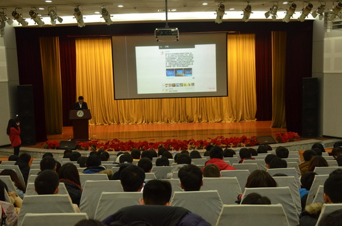 12月12日晚,由学工处举办的“十佳励志之星”事迹报告会在图书馆一楼报告厅召开,报告会场座无虚席。学生工作处处长徐国锋、副处长肖冬梅,资助管理中心高天琦、王富林,各院辅导员及学生代表参加了此次报告会。工程学院的彭涛、理学院的王德华、文法学院的韩晓冬、园艺学院的谭昊、动物科学院的陈秀丽、动物医学院的何彦文六名同学与在场同学分享了他们自立自强、励志成才的故事。