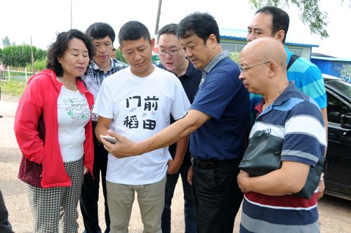 在五常市营城子乡计家村考察鸭菌稻有机稻米种植现场