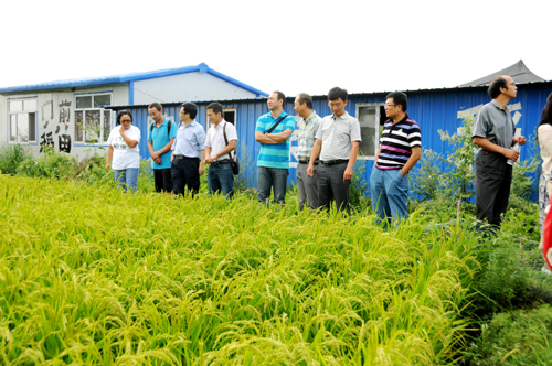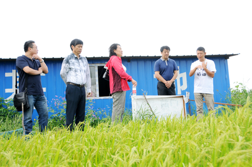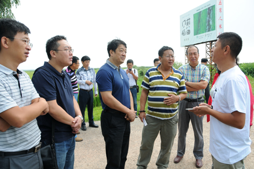 8月17日上午,校党委书记冯晓、副校长郑秋鹛、郭翔宇,省科技厅成果处副处长赵鹏、新农村发展研究院执行院长吴永清、动物科学技术学院党委书记高越山、理学院院长孟军、农学院副院长杨德光、新农村发展研究院副院长寇胜利、节能减排办公室主任戚国强、资源与环境学院教授王宏燕、食品学院赵新淮教授等相关领域的专家一行近20人首先来到五常市营城子乡计家村东北农业大学“鸭菌稻”五常合作种植区。