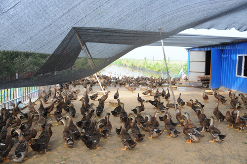 他说,鸭子在种养殖过程中起到了五大作用:一是除草,鸭子在田间觅食和嘻戏,把行距和株间的草踩倒在泥中,变成绿肥,除草率达到95%左右,因为在稻撮中的草鸭子除不到,需要人拨除。二是除虫,水稻返青后鸭就可以下地了,这时正是潜叶蝇产卵期,成蝇飞来产卵就会被鸭子吃掉,有效的控制潜叶蝇的发生。水稻田常见的负泥虫和二化螟成虫也都会被鸭子吃掉。三是培肥地力,鸭子整天在田地里游弋和觅食,会把粪便均匀排在田中,2000只鸭子四个月可产生粪便40吨左右,鸭粪是最好的有机肥原料,并且氮肥很高,起到了很好的二次追肥和培肥地力的作用。四是浑水,鸭子在田地里游弋,使田里的水上下搅动,增加水中的氧气,有利于营养的通透。五是根部修剪,鸭把嘴插在泥土中一公分左右,捕捉微生物,会把稻子的浮根嗑断,使这些根须扎到更深处,充分吸收土壤中的营养。