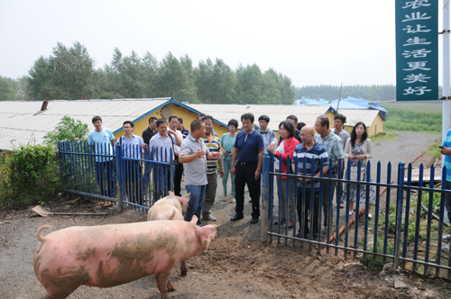 在五常市二河乡新庄村考察“猪公山—原生态养猪”循环模式