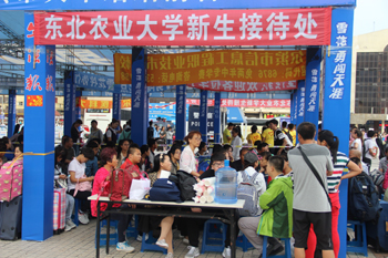 8月26日,东北农业大学校园洋溢着迎新的热烈气氛。绿荫掩映中,迎新的条幅诉说着东农人的热情。篮球场上,迎新的服务站彰显着东农全体师生的期待。校园里,衣着醒目的志愿者用微笑传递着东农人的温暖。
