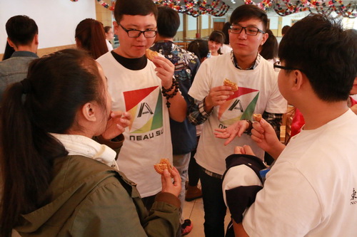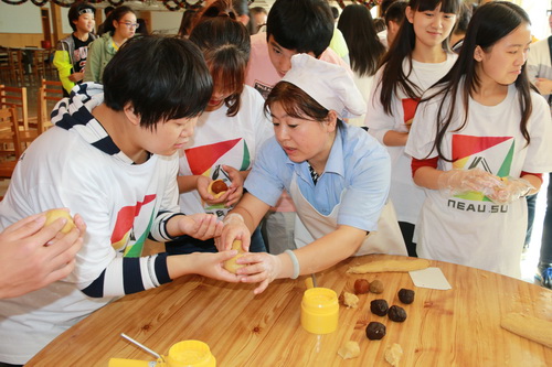 9月26日,为让中秋节在校同学也能感受到节日的温馨,校学生会与饮食中心组织部分2015级新同学在南区一食堂三楼开展“食堂教你做月饼”体验活动,共庆中秋佳节。校团委、校学生会和饮食中心管理人员与2015级来自福建、河南、河北、安徽、贵州等十余个省份的60余名学生参加了活动。