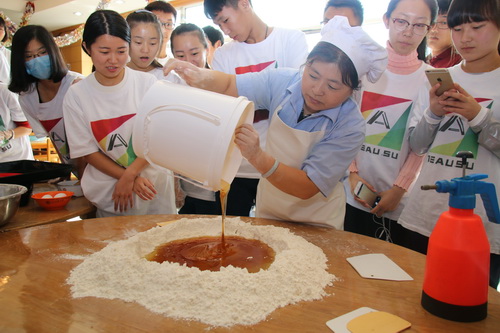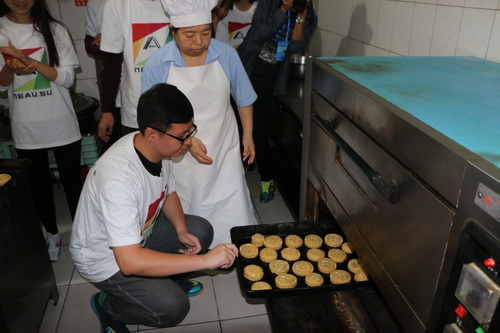 上午九点,同学们在食堂面点师傅的指导下制作月饼,经过拌馅、揉皮、烘烤等一系列程序,香甜的月饼制作完成,同学们在认真学习制作月饼的同时,还相互介绍了家乡独特的中秋习俗,加深了彼此之间的感情。