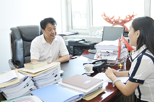 校党委书记冯晓接受记者采访