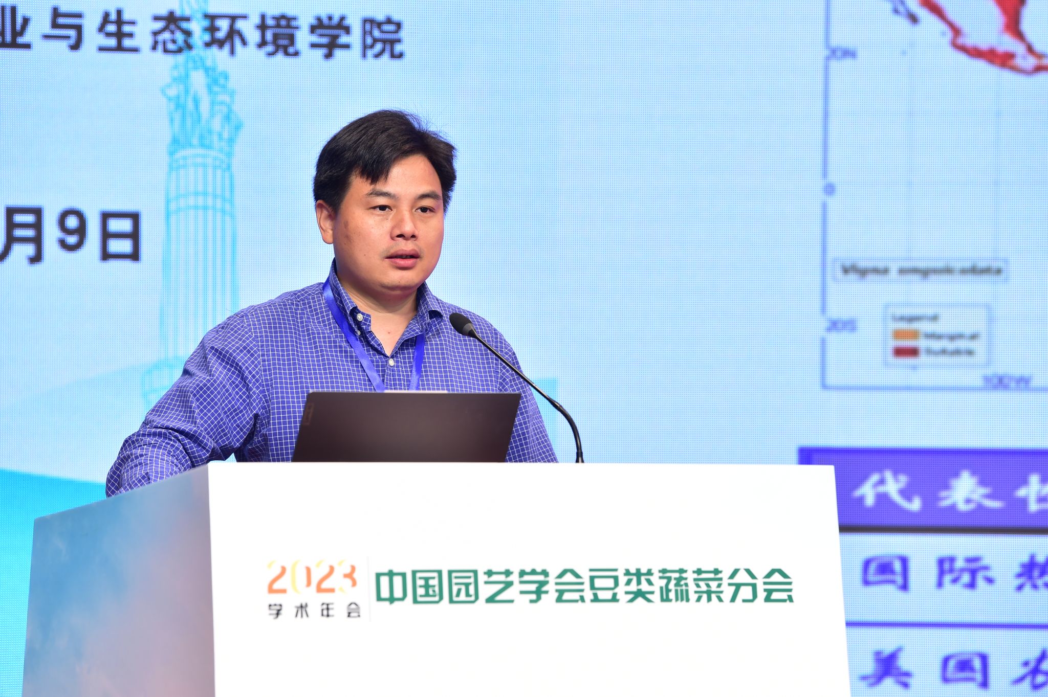 会议邀请我校农业农村部东北大豆生物学与遗传育种重点实验室主任韩英鹏教授作了《大豆抗病虫优异种质资源挖掘及创新利用》为题的报告。黑龙江大学现代农业与生态环境学院书记冯国军教授,中国计量大学生命科学学院院长徐沛研究员,豆类蔬菜秘书长、江汉大学潘磊教授分别作了《东北油豆角的种质资源创新及利用》《CPMMV侵染增强菜豆干旱抗性的分子机制》和《豇豆荚果遗传变异的分子基础研究》的报告。