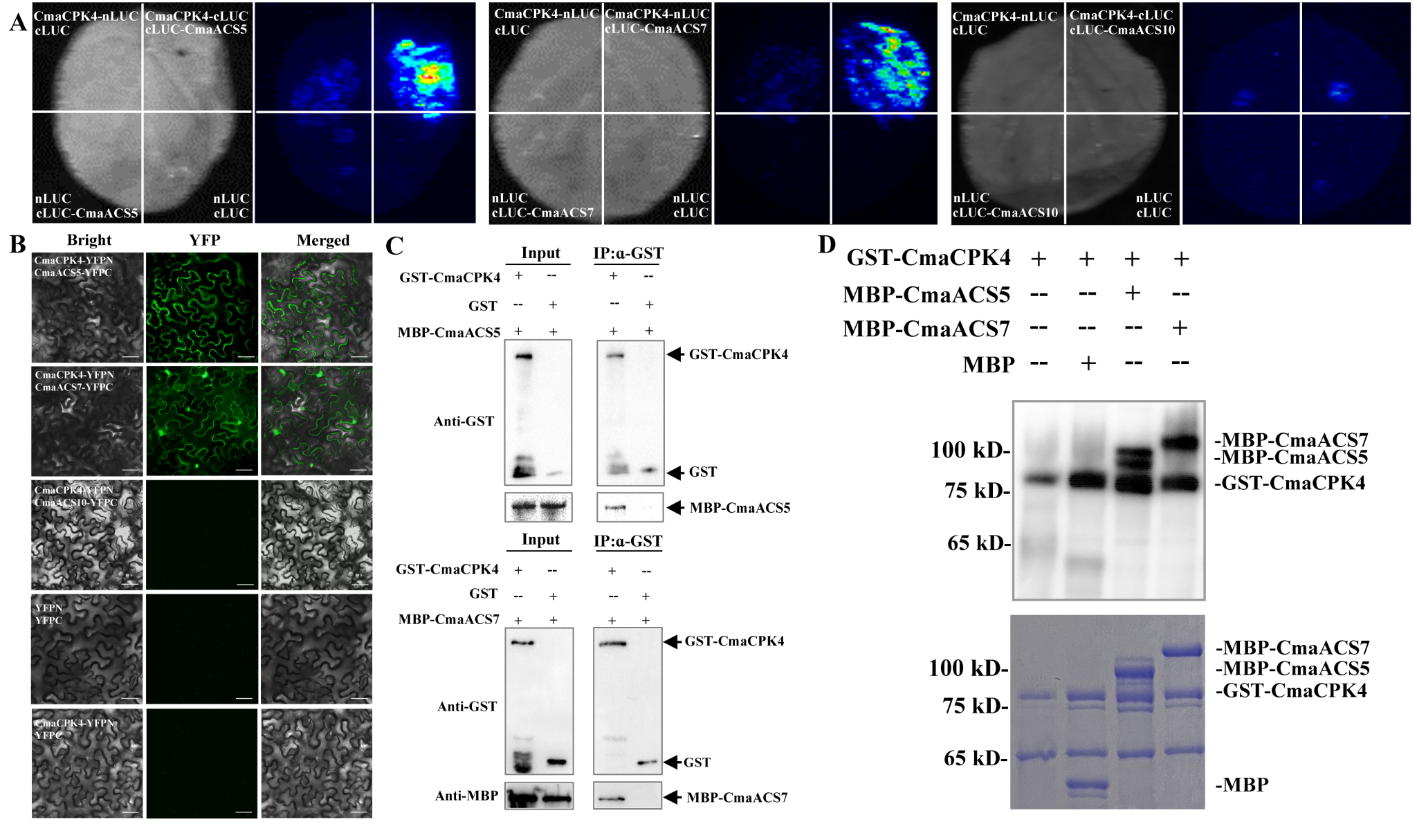 CmaCPK4与CmaACS5和CmaACS7相互作用并使其磷酸化