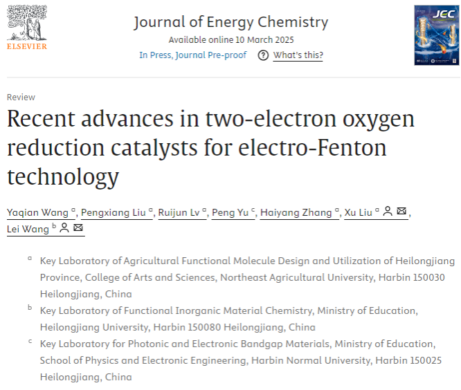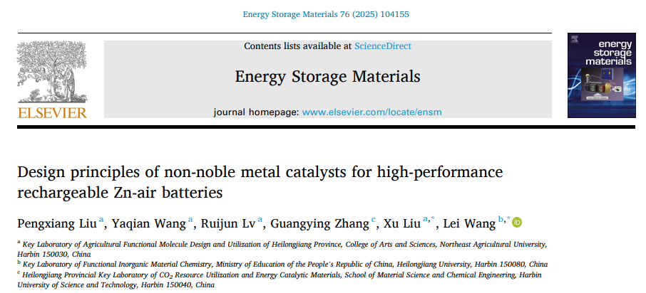 以上2篇论文,副教授刘旭和黑龙江大学王蕾研究员为论文共同通讯作者,东北农业大学化学系硕士研究生刘鹏翔(Energy Storage Materials)、王雅倩(Journal of Energy Chemistry)分别为论文唯一第一作者。论文得到了国家自然科学基金(22209021,22179034)、黑龙江省自然科学基金优秀青年项目(YQ2024B001)和黑龙江省博士后面上项目(LBH-Z24006)支持。