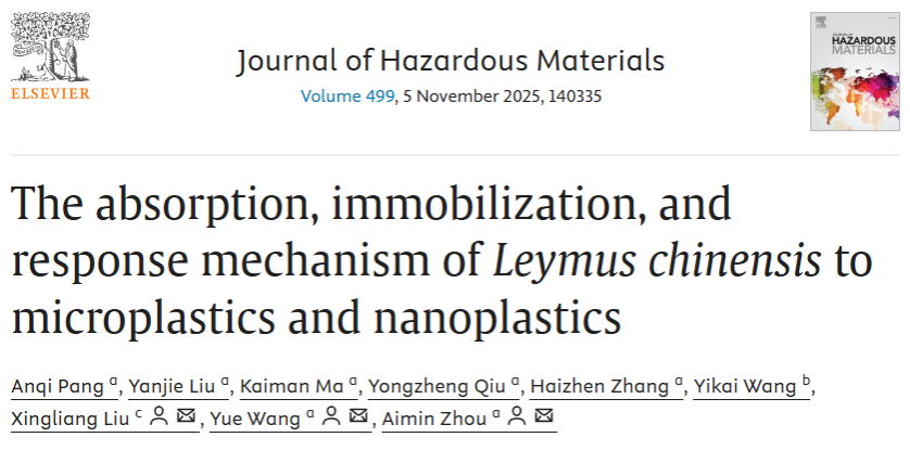 近日,我校园艺园林学院观赏园艺作物育种团队副教授周爱民、王月在国际学术期刊《Journal of Hazardous Materials》(中科院一区Top期刊,IF=11.3)发表了题为“The Absorption, Immobilization, and Response Mechanism ofLeymus chinensisto Microplastics and Nanoplastics”的研究论文。该研究为阐明微/纳米塑料的植物毒性机制提供了新内容,同时为利用羊草等生态关键物种修复污染土壤提供了重要理论依据。