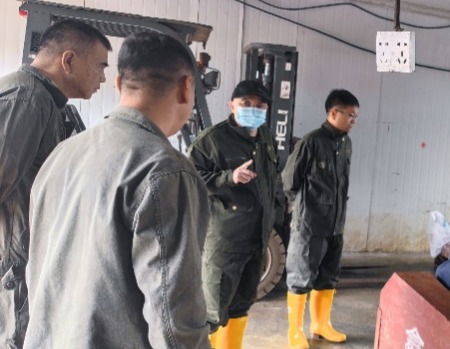 专家组经过清洗消毒区域后进入生产一线,参观了员工生活区、饲料加工区、水貂养殖区及冷库,就生物安全、饲料成分、养殖环境及现有问题与养殖场负责人进行了深入交流。针对养殖场生物安全防控措施和影响水貂生产的相关因素,李金龙和葛俊伟结合现场的实际情况,给出相关整改措施和防治建议,实施精准技术指导,提升了标准化管理水平。