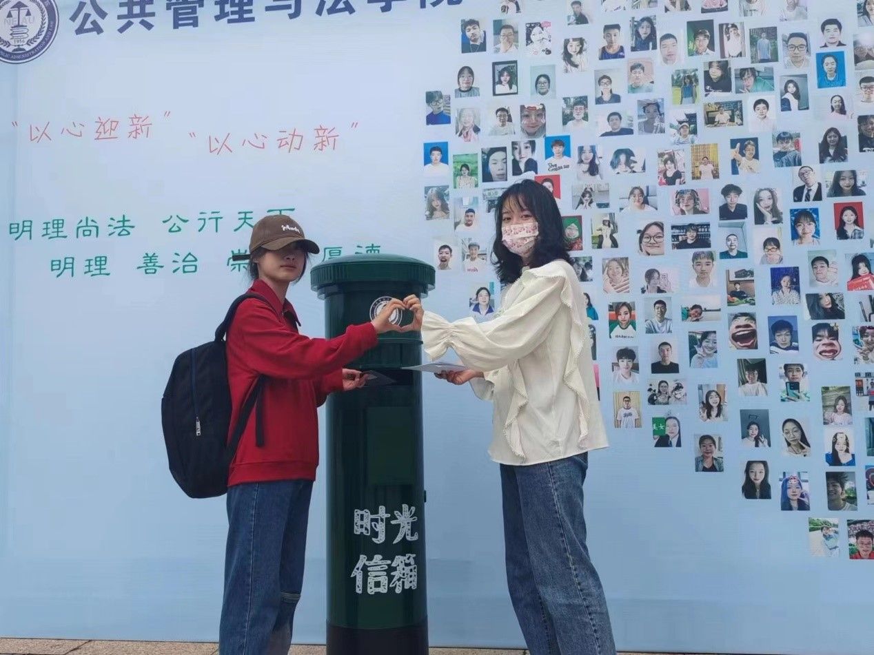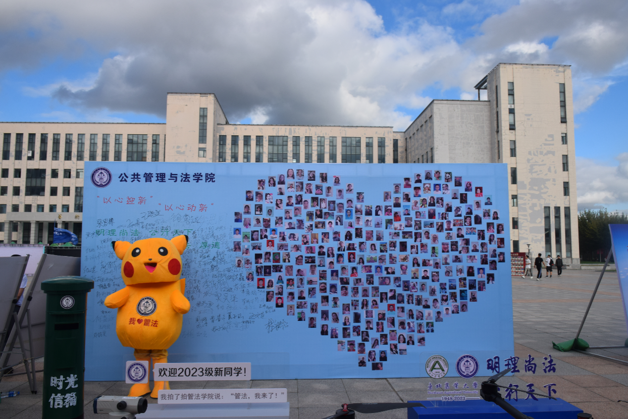 管法学院创意定制“我爱管法”主题精美迎新礼包,突出学校和学院标志性建筑及人文关怀,激发新生强农兴农、知农爱农的情怀担当。精心设计由全体新生笑脸照片集结而成的签名拍照墙,全方位营造浓厚迎新氛围。学院充分利用空间布局,在迎新场地摆放专属“时光信箱”,新生纷纷将提前写好的信件投入信箱,寄给四年后的自己。迎新现场为新生展示了法袍、无人机、全站仪等设备,供新生提前了解自己所学专业。