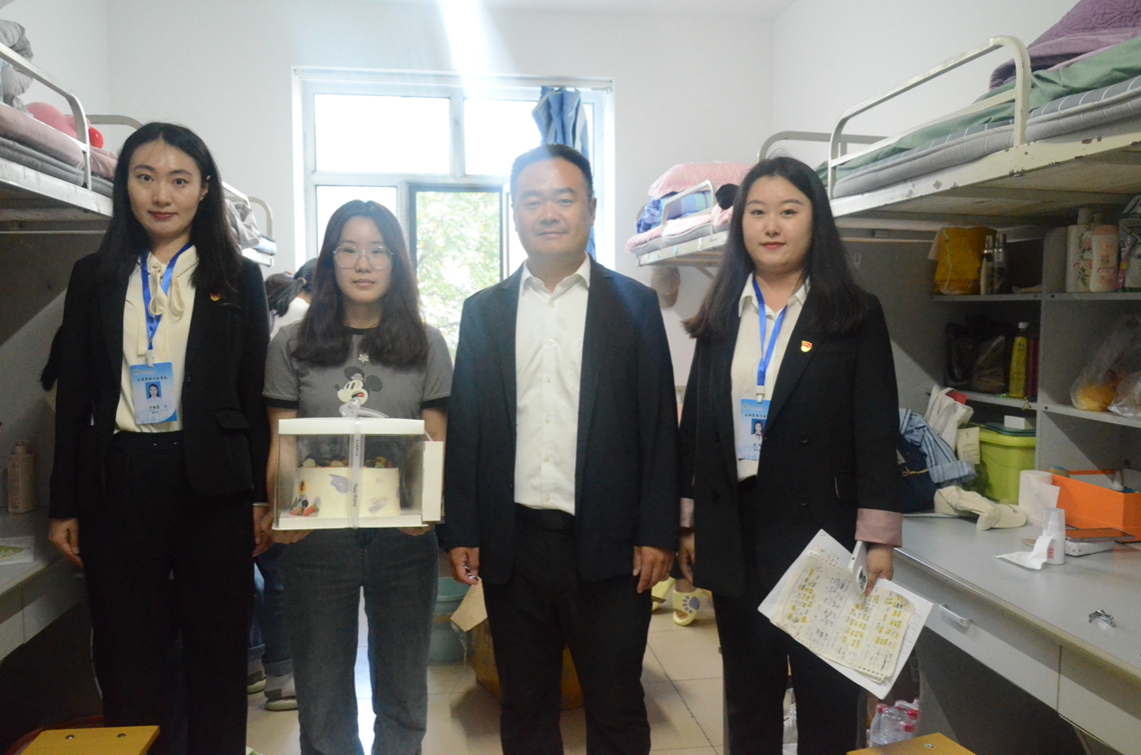 学院领导及新生辅导员走访寝室并为过生日同学送上蛋糕