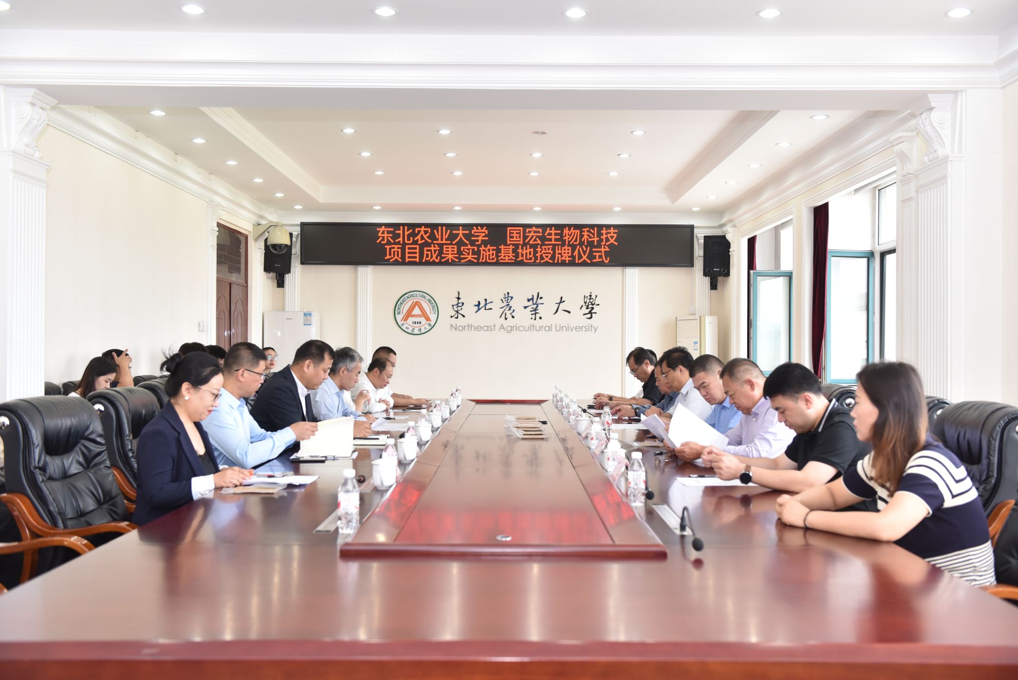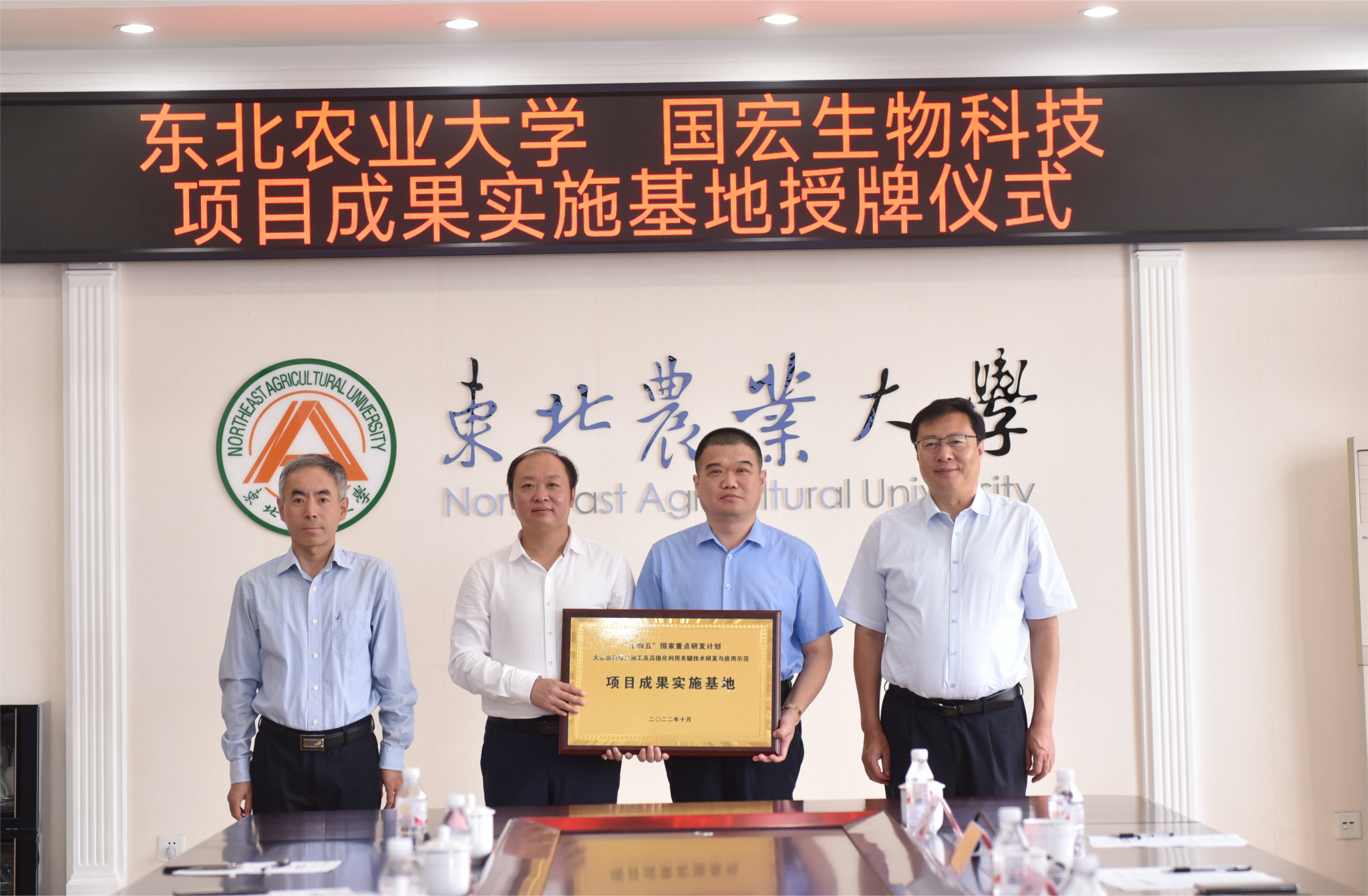 为进一步深化校企合作关系、创新合作模式、提高合作水平,促进学校科技、人才资源与企业深度融合,加速科技创新及成果转化,9月4日上午,东北农业大学与国宏生物科技有限公司举办“项目成果实施基地”授牌仪式。高唐县县委书记杨新胜,县委办公室主任李保胜,汇鑫街道党工委书记王京明,县委办公室副主任刘健,经济发展服务中心副主任、开发区管委会副主任贾国安,国宏生物科技有限公司董事长赵庆奎,技术研发部执行总监张健,我校副校长孙占峰,食品学院党委书记潘俊波,社会合作与成果转化中心(新农村发展研究院)主任(院长)朱志猛,副主任(副院长)宋珲,食品学院教授李杨,副教授齐宝坤、张爽出席授牌仪式。授牌仪式由朱志猛主持。