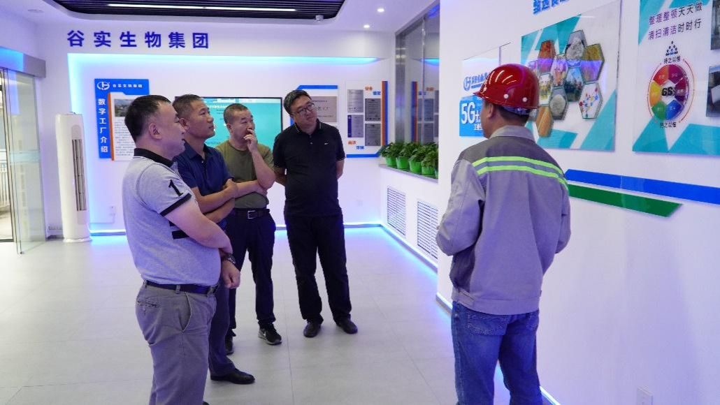 签约仪式结束后,谷实生物集团直属工厂生产主任姚洪亮和化验室主任曹玉琦带领张铁一行参观生产现场和化验室现场。