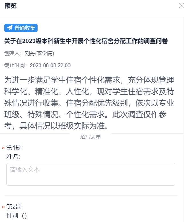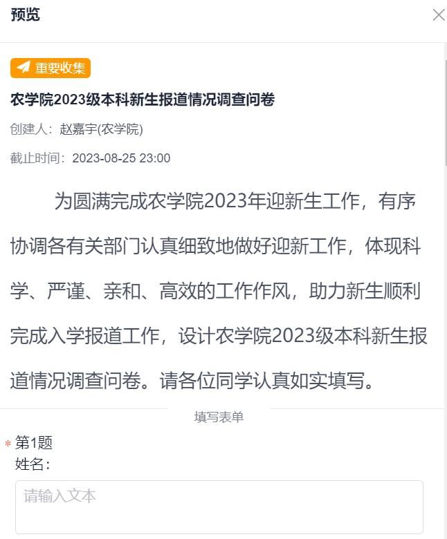 “一对一”精准迎新对接问卷回收