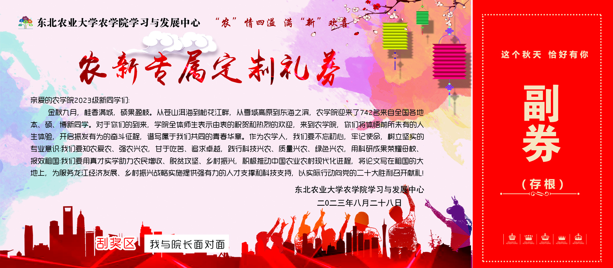 新生“我的专属入学教育”抽奖票面