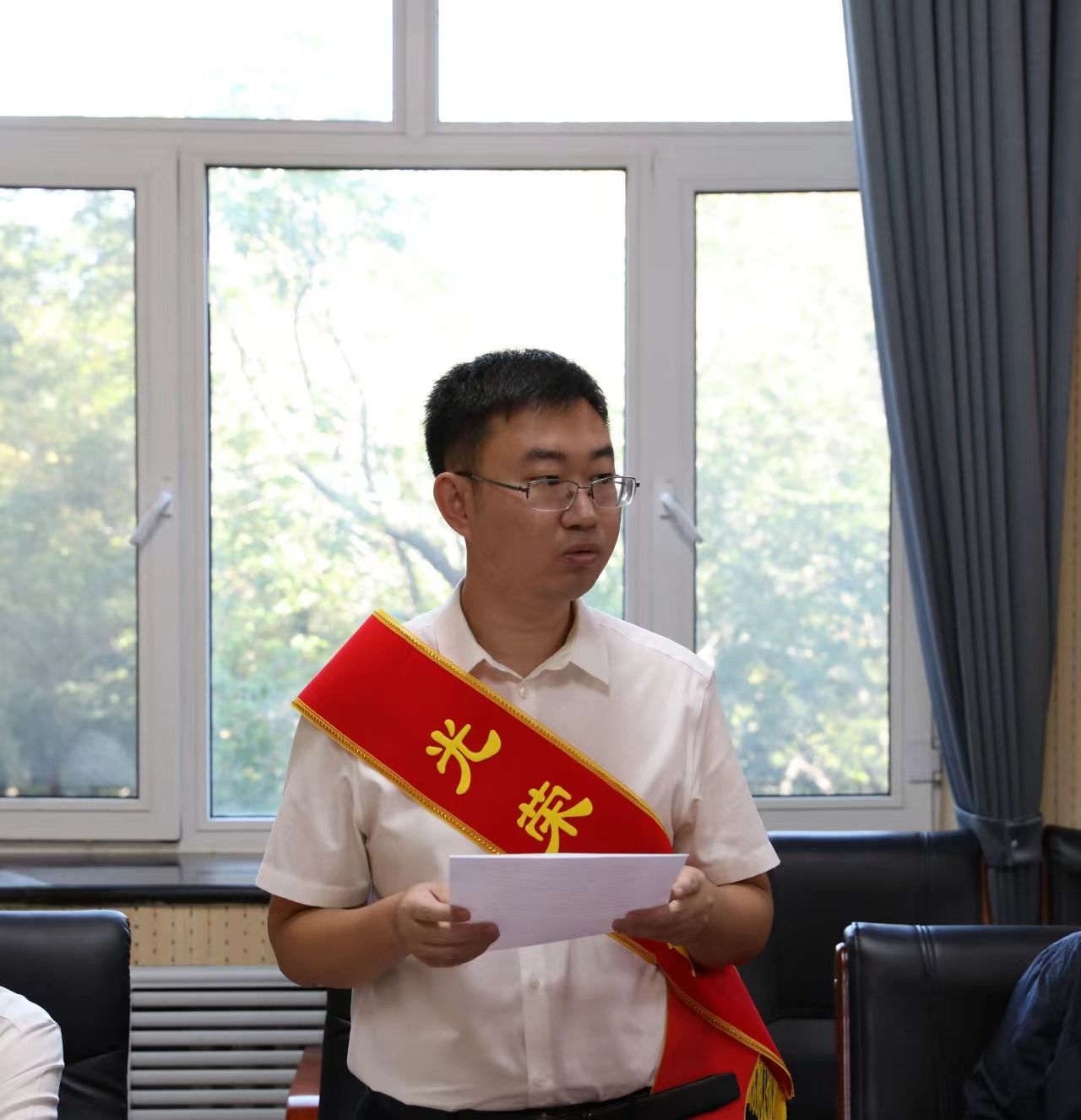 王沛文代表新入职教师发言,他表示,一定会以前辈们为榜样,爱岗敬业,潜心教书育人,敢为人先,探索科学前沿。
