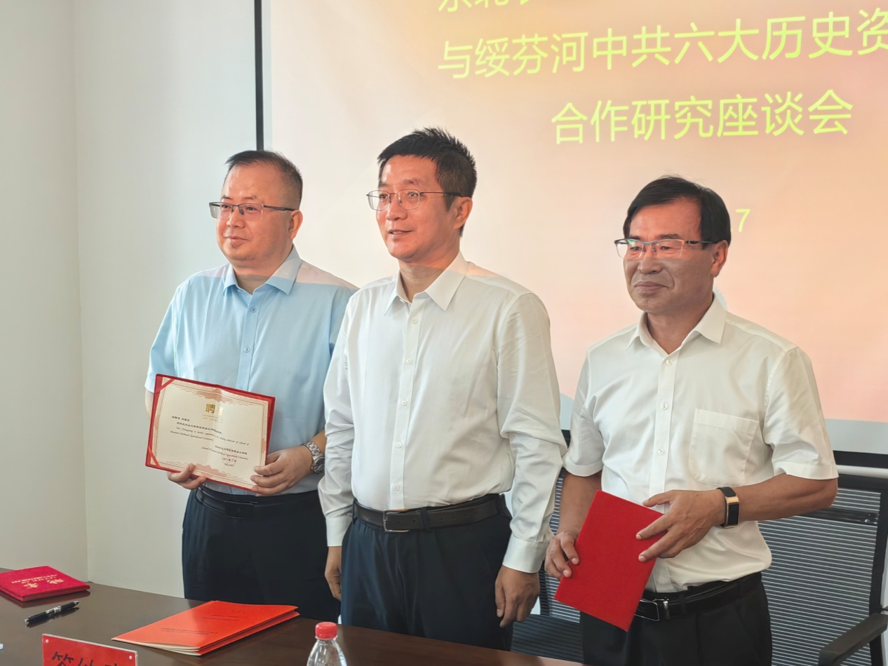 吕晶与中共六大历史资料馆负责人闫春光签订合作协议
