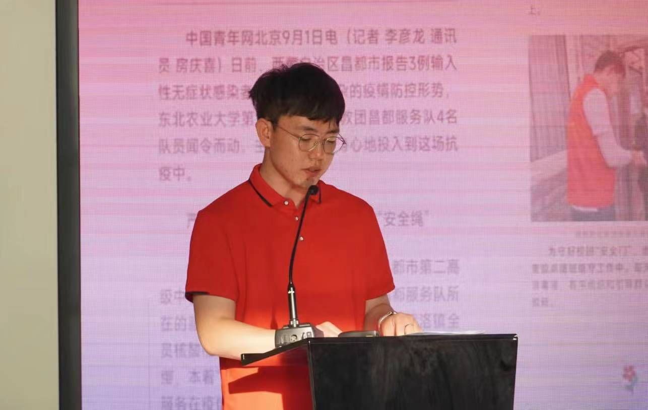 会上,李卡就我校研究生支教团招募方式、培养模式、志愿者岗前培训制度以及支教期间的工作内容及相应保障等进行了讲解。他表示,我校研究生支教团培养工作分为三个阶段,第一阶段为支教团组建后志愿者在校团委实习锻炼一年,校团委以“青马工程”专项计划为平台,为支教团志愿者提供理论学习、实践活动与实岗锻炼,不断夯实支教团志愿者的思想根基和能力基础;第二阶段为在服务地开展支教服务工作,支教团作为中小学专职教师奔赴西部基层和我省边境地区从事乡村中小学教育工作,同时融入地方发展大局,参与乡村振兴志愿服务工作;第三阶段为支教团志愿者完成支教任务返校后通过专项活动、主题演讲等多种形式把“奉献、友爱、互助、进步”的志愿者精神在校园弘扬好、传播好,助力共青团青年思想引领工作开展。李卡代表校团委对我校第九届研究生支教团志愿者圆满完成支教任务平安返校表示热烈的欢迎,并寄语第九届研究生支教团成员,希望他们返校后认真攻读硕士学位,继续发光发热,充分发挥东农青年榜样力量,为我校的青年工作和志愿服务活动作出自己的贡献。