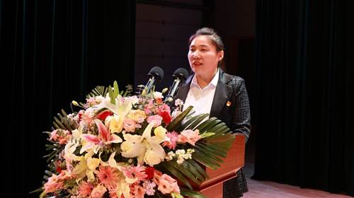 宣传部文化建设科科长洪丹代表优秀共产党员、优秀党务工作者发言