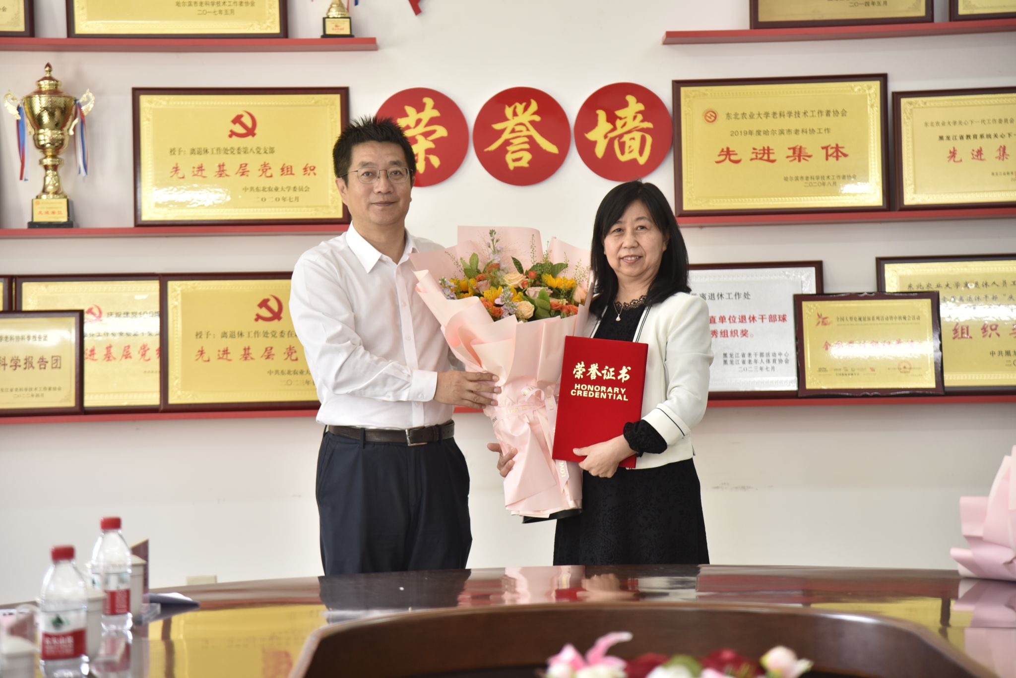 贺景平代表学校党委向即将退休的各位老师表达了最诚挚的祝福和衷心的感谢,号召全体新退休教职工充分发挥政治优势和经验优势,为学校各项事业高速发展和新时期龙江全面振兴全方位振兴作出应有贡献。贺景平对退休同志做好角色转换提出四点建议:一要永葆政治本色,时刻牢记共产党员身份,做到离岗不离党、退休不褪色,不断加强政治理论学习,坚定理想信念,继续为学校事业发展续航助力、添砖增瓦;二要遵守相关规定,严格遵守党的纪律、国家的法律法规和学校各项规定,不断增强纪律观念和规矩意识,自觉做到守住底线、不越红线;三要安排好退休生活,积极调整心态,多陪伴家人,多领略祖国壮美河山,把身体保养好,把家庭经营好;四要积极发挥余热,继续发挥工作经验丰富、群众基础深厚、社会影响广泛的独特优势,发扬“艰苦奋斗,自强不息”的东农精神,弘扬主旋律,传播正能量,在老科协、关工委等平台积极发挥作用,努力讲好东农故事,为学校世界一流学科和省高水平大学建设贡献新时代东农老人的智慧和力量。