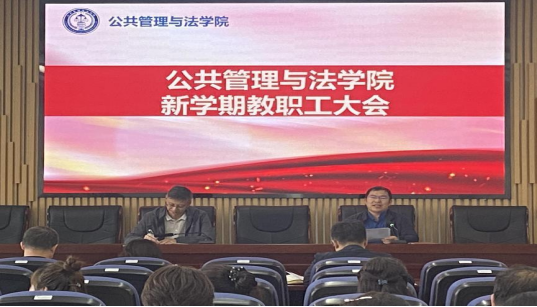 为落实立德树人根本任务,总结上学期工作成效,部署新学期工作任务,公共管理与法学院于9月13日下午在学院报告厅1104召开2023年秋季新学期教职工大会。学院党政领导班子、全体教职工参加会议。会议由学院党委书记闫清波主持。