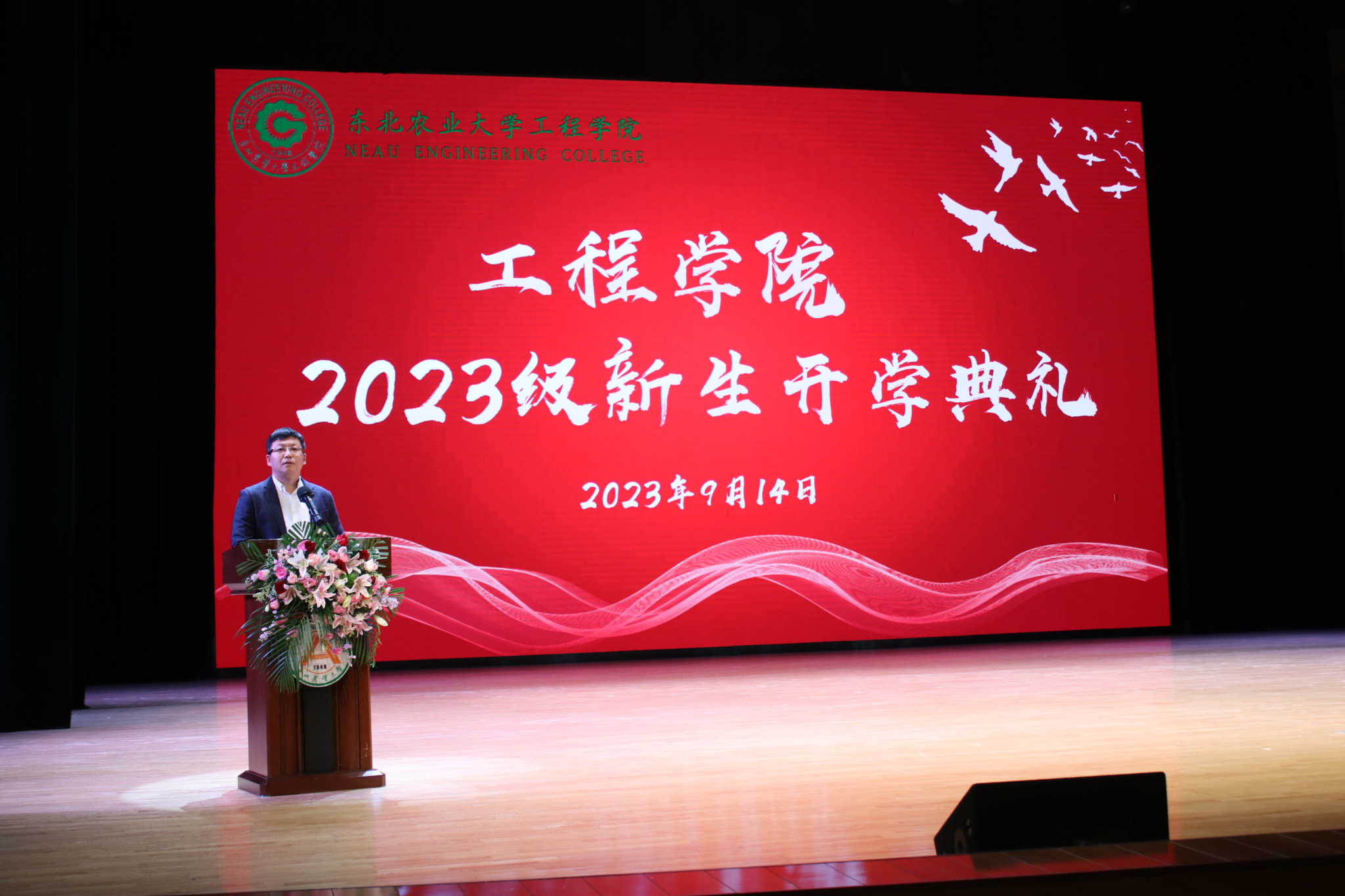 金色九月,阳光明媚,秋风送爽,丹桂飘香。9月14日下午,工程学院在音乐厅隆重举行2023级新生开学典礼。来自祖国24个省市地区的671名新学子满怀美好憧憬,参加庄重仪式,聆听师长寄语,以一堂生动的新生入学教育,扬起在东农工程启航青春的风帆。学院党委书记黄步海、党委副书记孙涛,副院长臧宏、王立军、王金峰、学院全体教职工、全体辅导员老师、2023级本科新生班主任以及2023级本科生和研究生参加此次典礼。开学典礼由学院党委副书记孙涛主持。
