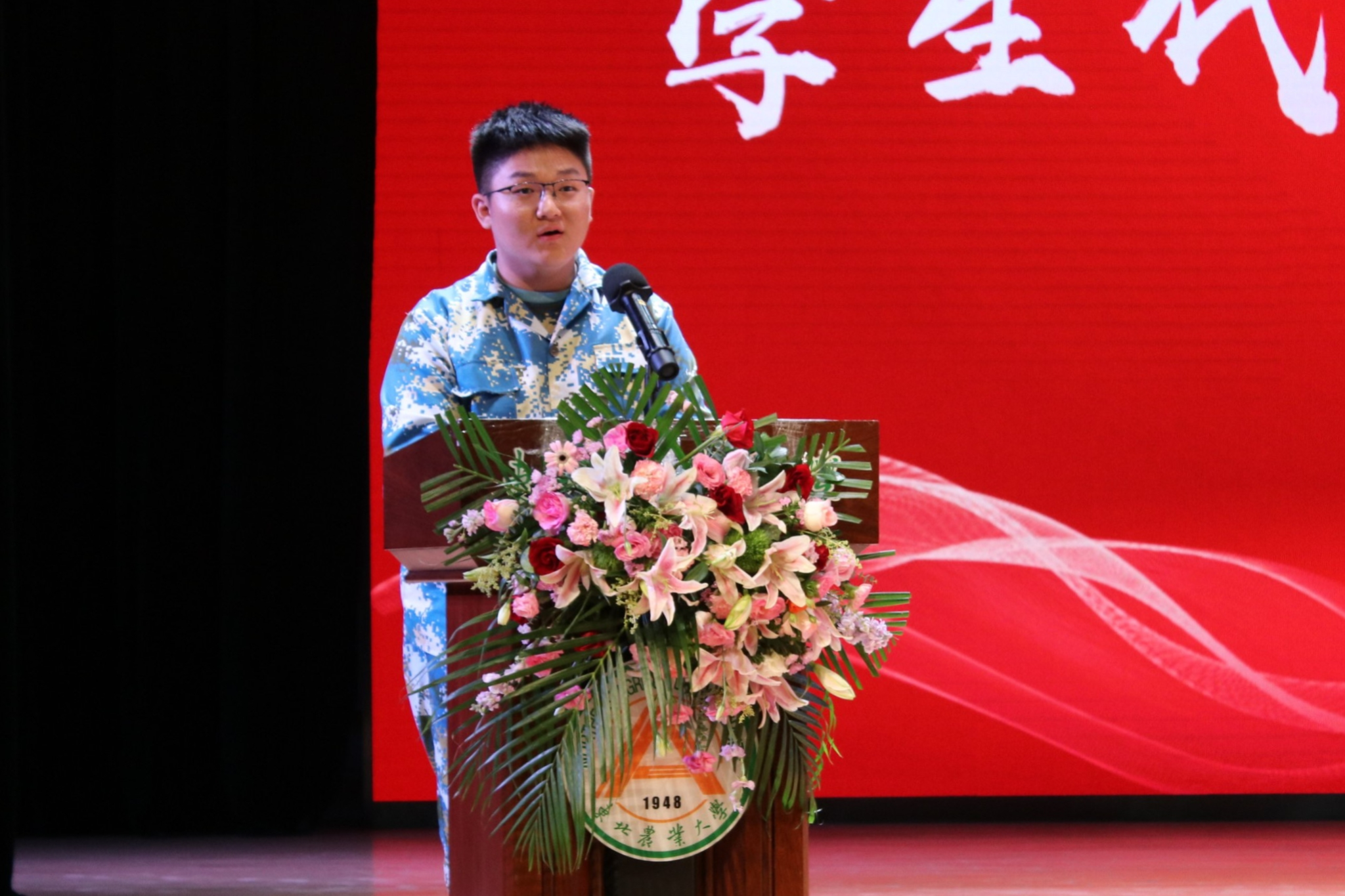 机化2381班马楷涛作为新生代表发言,他表达了成为工程人的喜悦与激动,并对未来大学四年学习生活的无限憧憬,并号召全体新生要在学习上脚踏实地、求真务实,努力提高自己的专业能力,与时代一起,向阳而生,为将来步入社会,报效祖国蓄能发力。