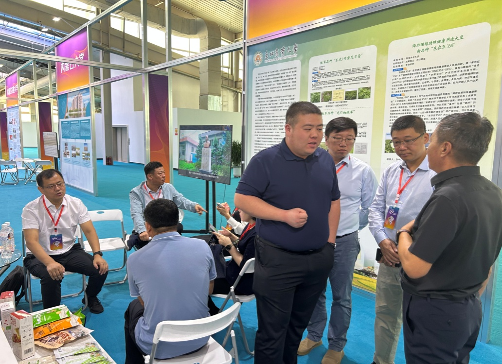 参展期间,内蒙古多家优秀企业来到我校展区了解学校科技成果情况,并就校企合作、成果推广示范、成果转化等工作开展深入交流。其中,内蒙古鲜农农业科技有限公司与我校就番茄育种合作研发、成果推广示范等内容开展深入洽谈,并达成了初步合作意向;内蒙古西蒙种业有限公司对刘珊珊教授研发的“降胆固醇特殊健康用途大豆新品种东农豆358”产生浓厚兴趣,达成了初步合作意向;内蒙古富康荣盛管业有限责任公司就李凤兰教授研究的“低温秸秆腐熟菌剂开发及寒地农业废弃物综合利用技术”进行深度交流,围绕秸秆造纸、植物地膜等方向达成初步合作意向。巴彦淖尔市科技成果转化中心主任刘庆元来到我校展位,就深入推进双方校地合作、成果推广示范、成果转化等工作与我校进行了对接交流。